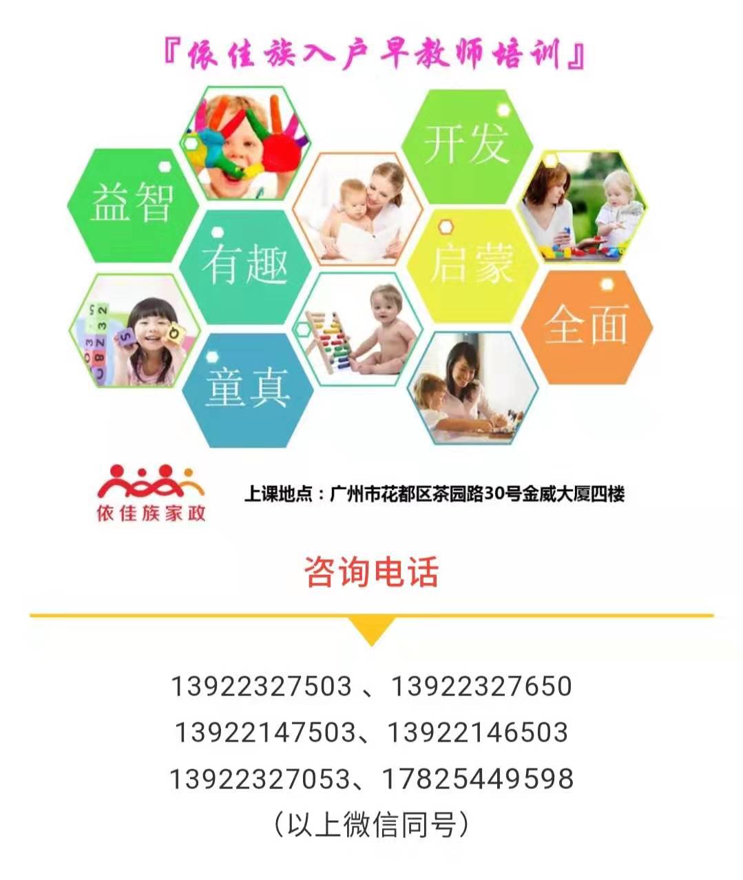催乳師培訓、產后康復培訓、 月嫂培訓班、育嬰師培訓、小兒推拿培訓、早教師培訓就到廣州依佳族培訓學校-包考證、包住宿、畢業考取證書后推薦工作終生免費復學,免除您后顧之憂!咨詢熱線:13922327430(微信同號)