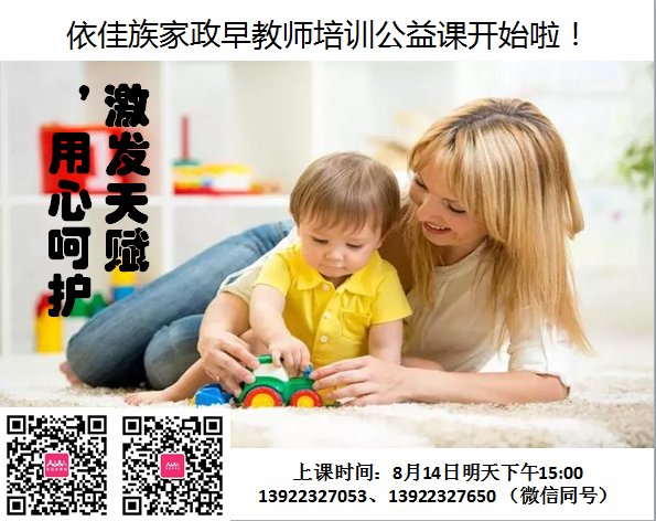 依佳族家政早教公益課愿和家長一起,抓住早教黃金期,激發天賦,用心呵護!