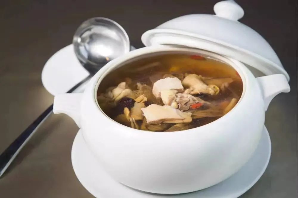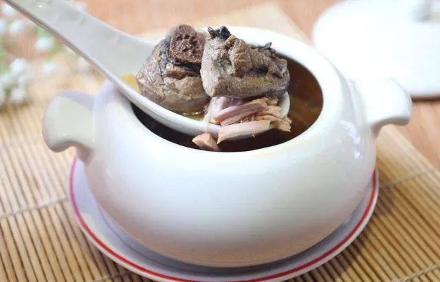 然后加入清湯、紅棗、桂圓肉、枸杞煮至爛熟,加入鹽、味精、胡椒粉,再煮5分鐘即可食用。